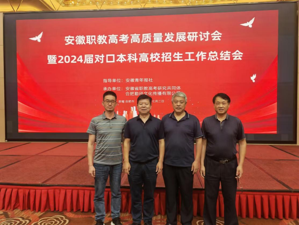 2024年7月3日,安徽职教高考高质量发展研讨会暨2024届对口本科高校招生工作总结会在合肥圆满举行。奥亚教育集团高度重视并积极响应,派出了由集团教学管理部和校区领导组成的精英团队参加此次会议,与来自全省职业教育领域的精英学校、专家及学者齐聚一堂,共探职业教育发展的新路径与新策略。